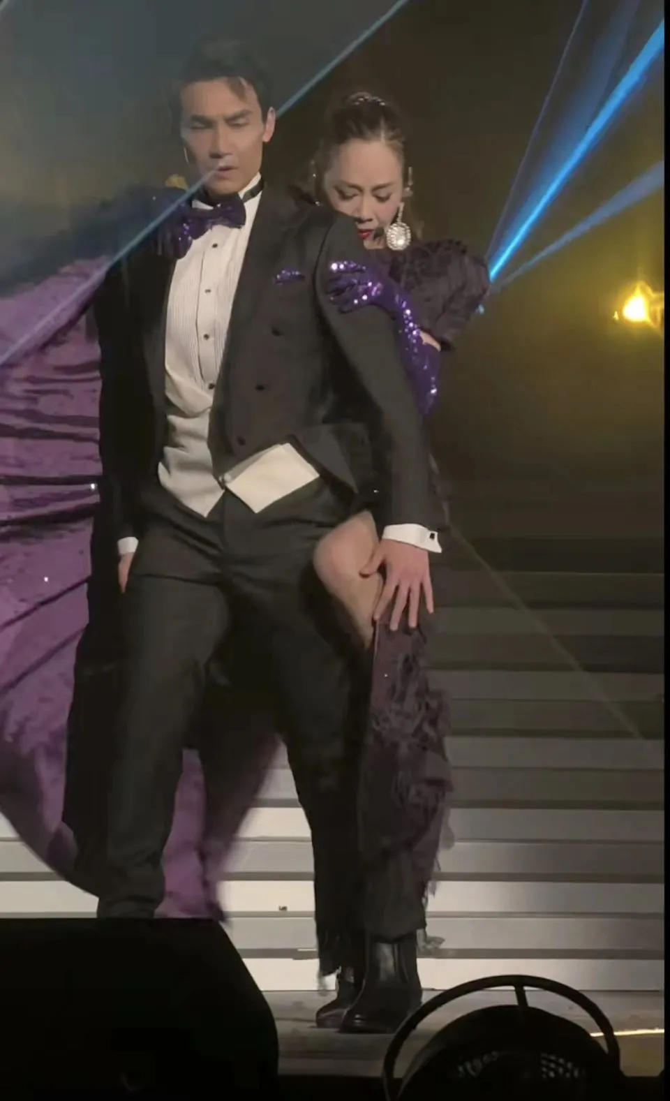 在社交媒体流出的精彩片段中,陈松伶身穿闪亮舞衣大秀修长美腿,张铎更是毫不避忌地将手抚上太太的大腿,两人互动画面极其诱人,恩爱程度羡煞旁人。